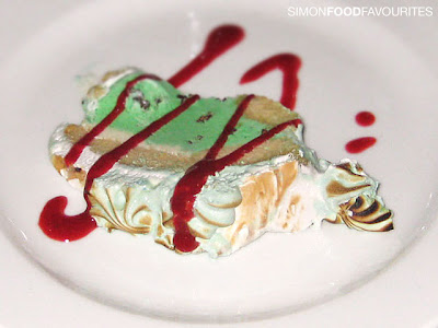 In terms of the food I wouldn't say it's '5-star dining' but it's generous portions will definitely fill you up and it's a step above the usual fare I'd expect from a themed restaurant. All four table guests were pleasantly surprised with their meals and combined with the fun-filled atmosphere makes for good night out. They also offer quite a few choices on the menu but I was disappointed that the websites headlined entrée of Prawn and Crab Ravioli with seafood bisque was not on the menu tonight and was wondering if the advertised main headlined dish of Mussels Mariniere was in fact the South Australian Black mussel in tomato bouillabaise broth — perhaps it was? If you're after a spectacular looking dessert then Tharen's speciality celebration 'fiery' cake, the classic Bombé Alaska, sure gets the cameras and guests excited. Reminds me of the time when the savoury dish of the Hor Mok Talay came out at Thai Pothong in Newtown wrapped in foil and all lit up. I'm a big fan of peppermint choc chip ice cream although was hoping the meringue shell would have been a bit crispier and thought the berry coulis was a touch too much on the sour side for my taste buds.