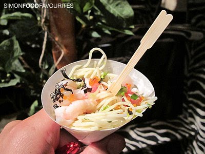 Sushi Choo: Japanese angel hair pasta, seafood reduction, mixed with sashimi and topped with dried seaweed. One of the hardest dishes to eat with a toothpick fork, FAIL, so couldn't really appreciate the flavours which seemed a bit lack-lustre.
