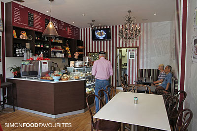 PROS: Large range of quality cakes and pastries made daily, Limited breakfast menu but done well, Good Belgium waffles and decent coffees